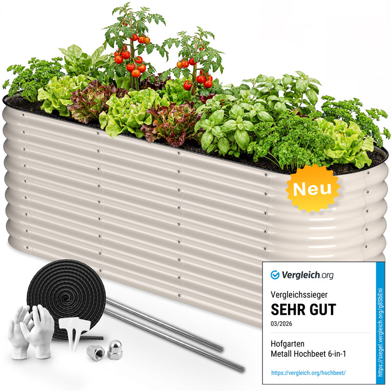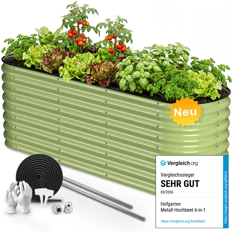 Ein Metall-Hochbeet lässt sich deutlich schneller und einfacher aufbauen als ein Holzhochbeet. Während bei Holz oft sägen, bohren und verschrauben erforderlich sind, kommt unser Metallhochbeet als präziser Bausatz mit bereits passenden Bauteilen. Dank vorbereiteter Verschraubungen gelingt die Montage in kurzer Zeit – ganz ohne spezielles Werkzeug oder handwerkliche Erfahrung. Schnell aufgestellt und direkt bepflanzbar!